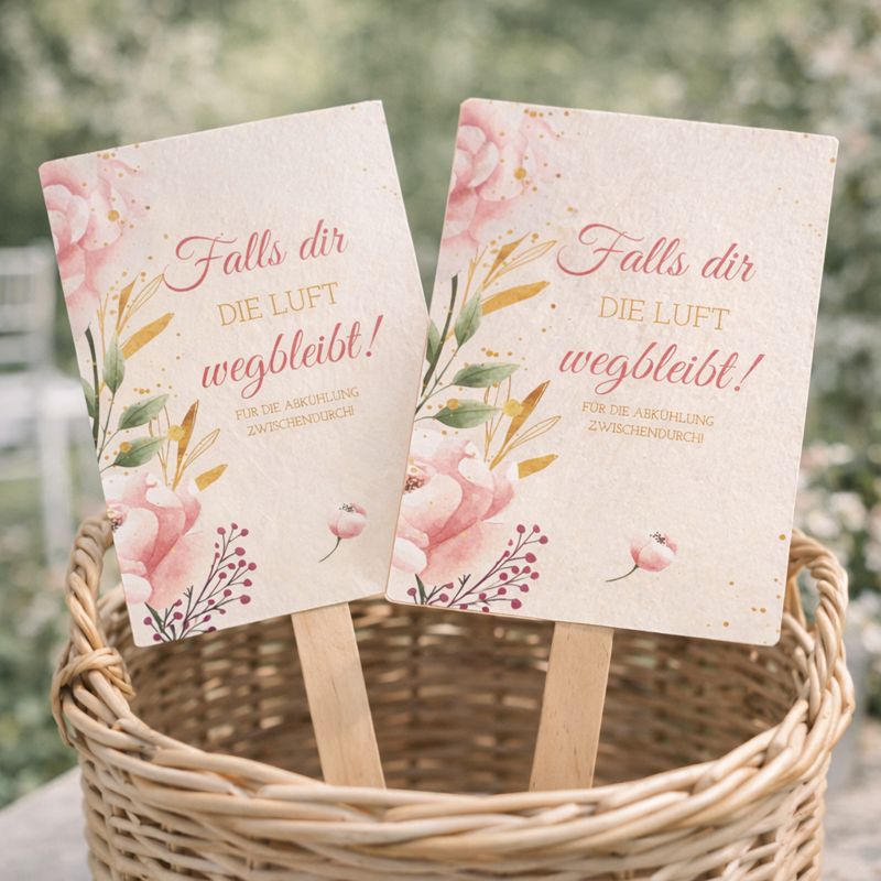 Gerade bei einer Sommerhochzeit oder einer Trauung im Freien kann es schnell warm werden. Mit diesen liebevoll gestalteten DIY-Hochzeitsfächern schenkst du deinen Gästen eine stilvolle Erfrischung.