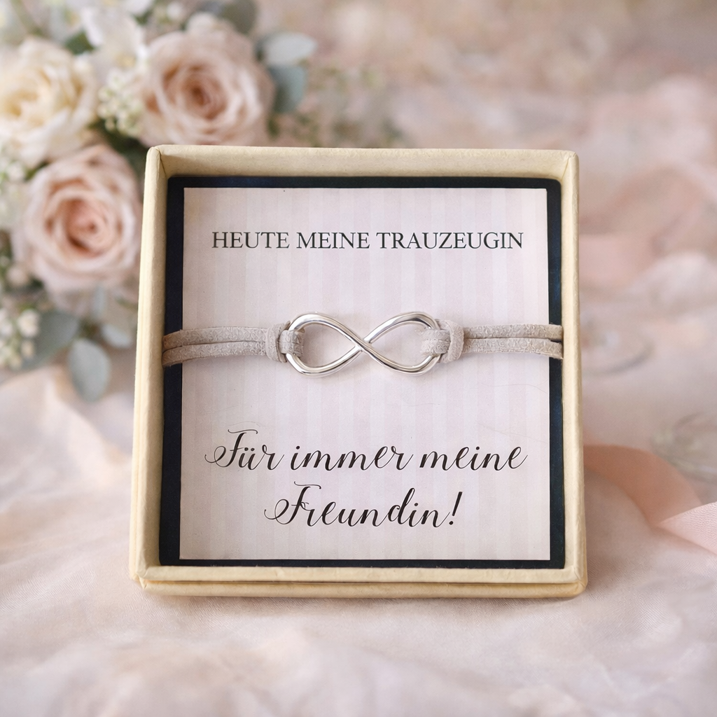 Geschenk für die Trauzeugin | Armband Infinity in Geschenkschachtel