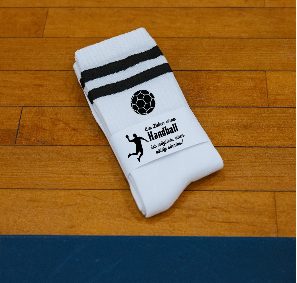 Zu den Sportsocken gehört eine stilvolle Geschenkbanderole mit sportlichem Motiv und passendem Spruch. So werden die Socken im Handumdrehen zu einem fertigen Geschenk mit Aussagekraft und können direkt überreicht werden.