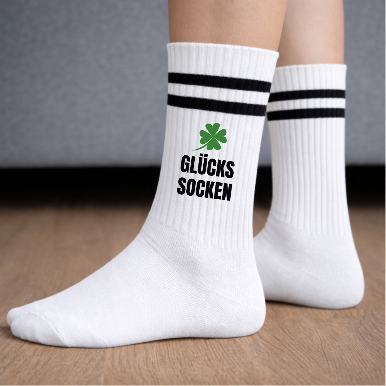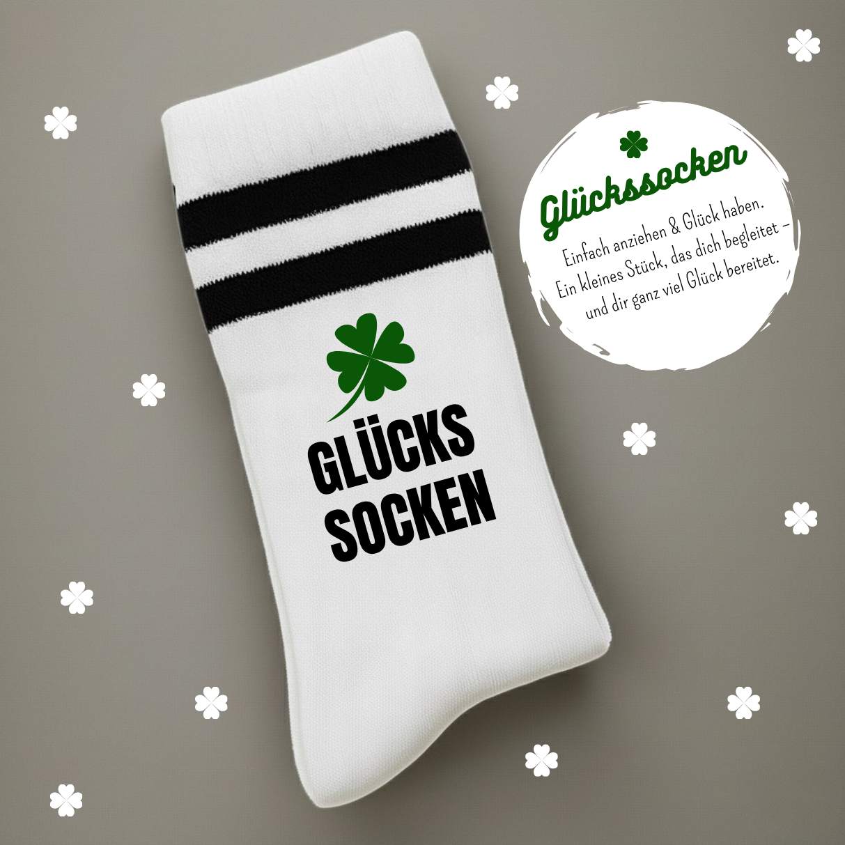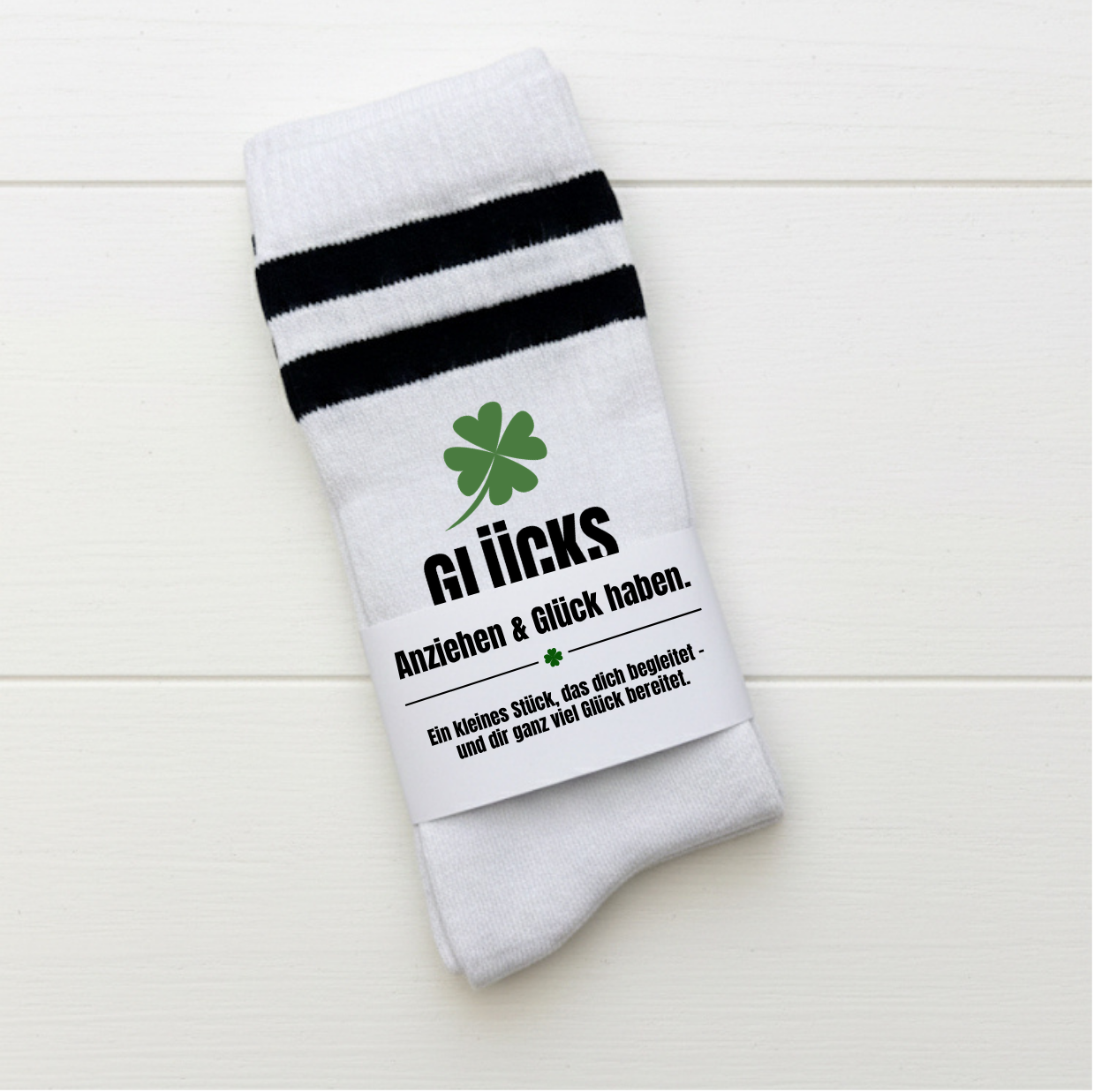 Glückssocken im modernen Design inklusive hochwertiger Geschenkbanderole mit Spruch