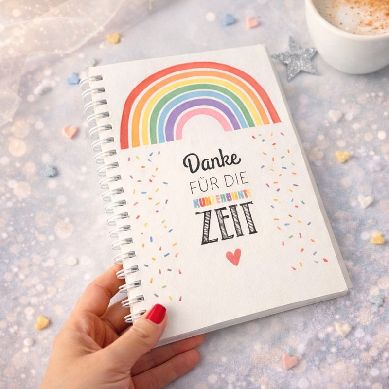 Dieses Erinnerungsbuch bietet jedem Kind die Möglichkeit, eine eigene Seite zu gestalten – mit Worten, Zeichnungen, kleinen Bastelideen oder Fotos. So entsteht ein einzigartiges Abschiedsgeschenk, das lange in Erinnerung bleibt.