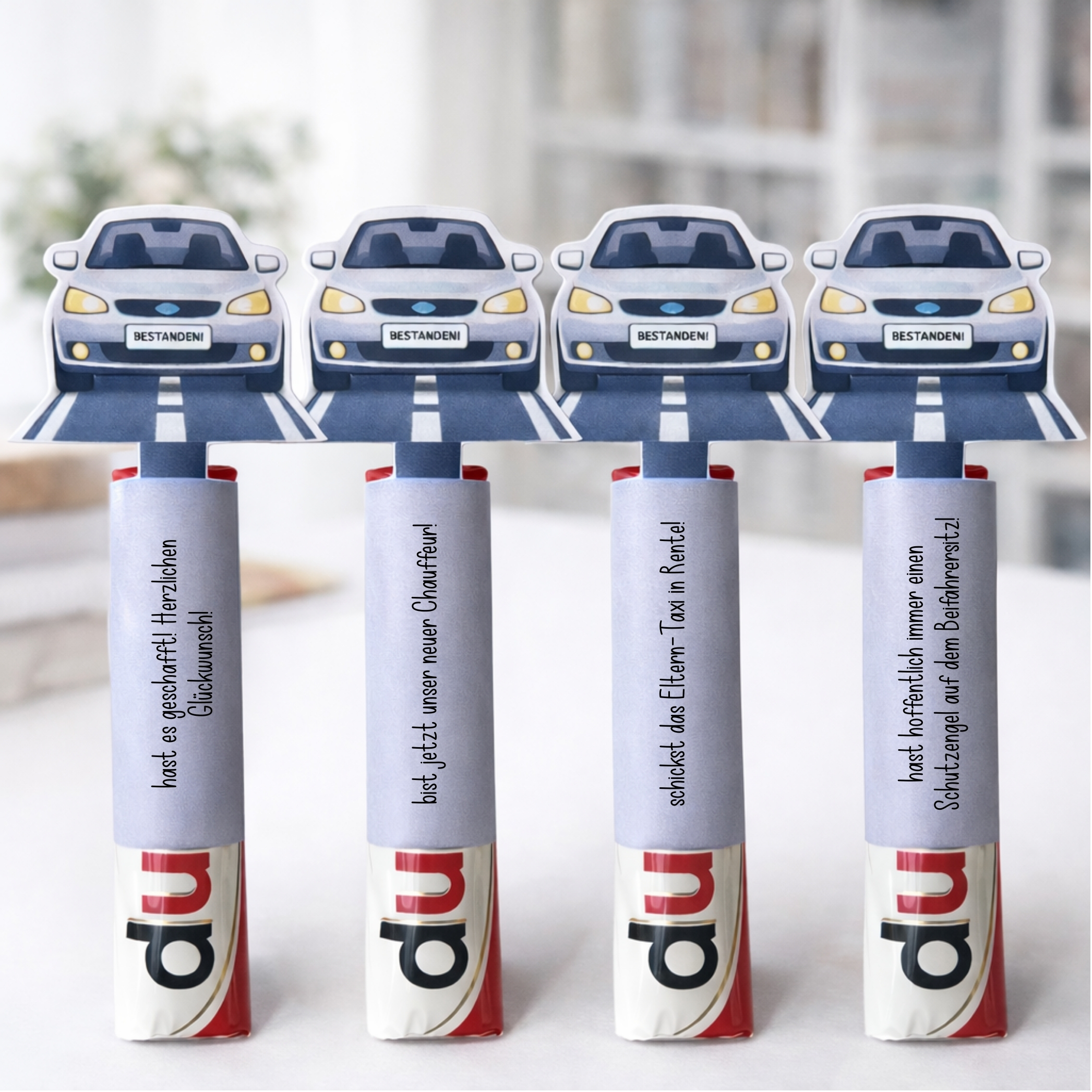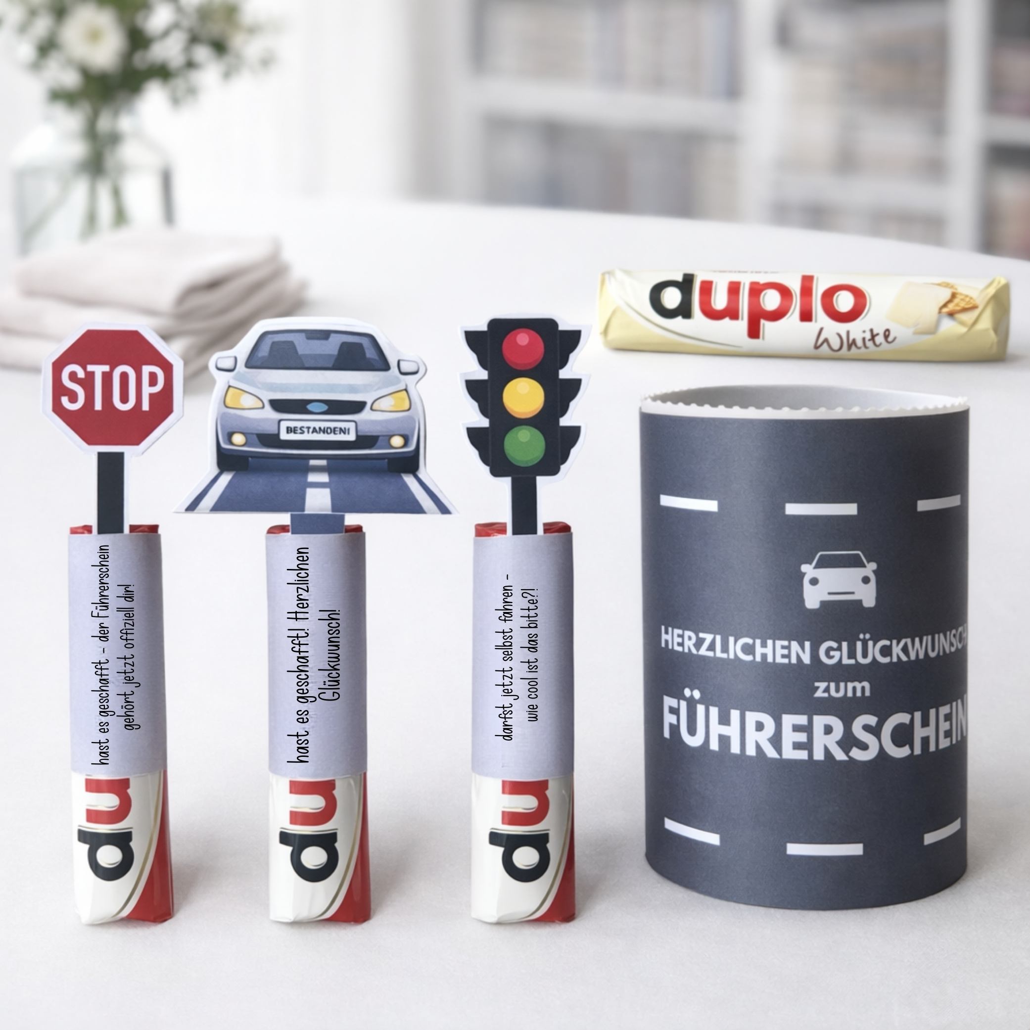 Mit diesen Duplo-Banderolen zum bestandenen Führerschein zauberst du im Handumdrehen ein originelles, humorvolles und liebevoll gestaltetes Geschenk – perfekt als kleine Aufmerksamkeit nach der Fahrprüfung.