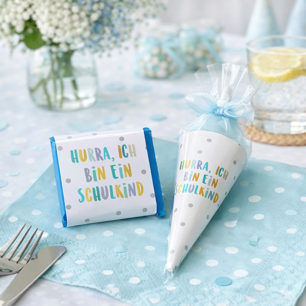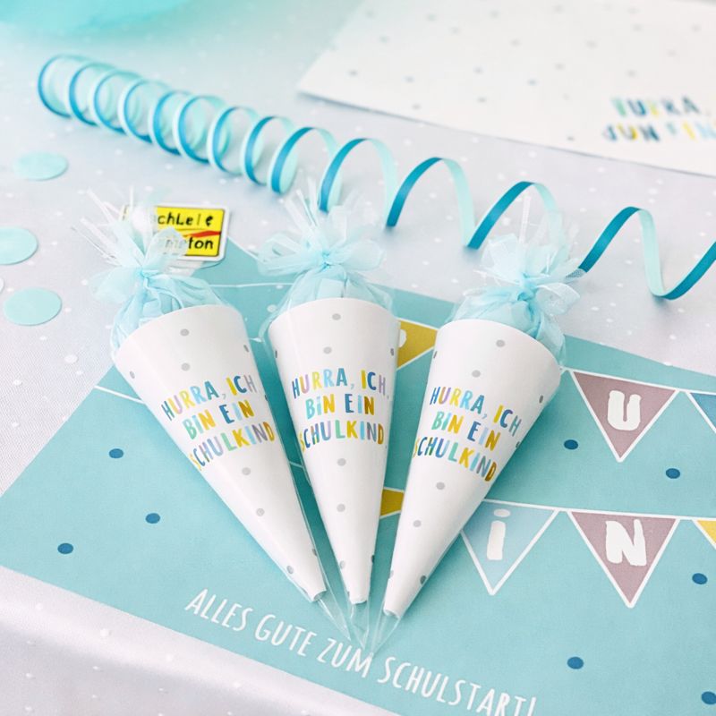 DIY Mini Schultüten Einschulung | Motiv Türkis | Deko & Gastgeschenk