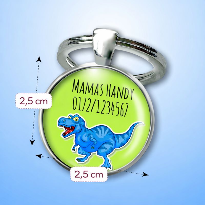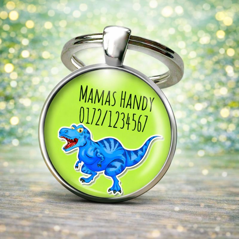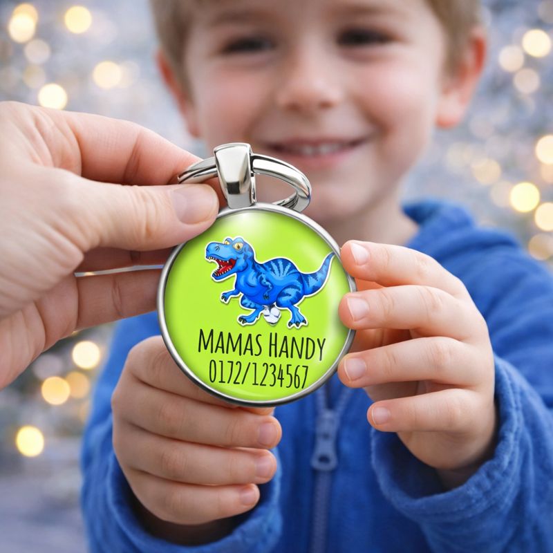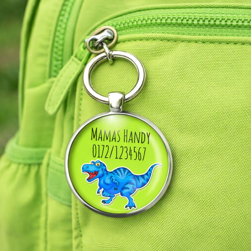 Einschulung Geschenk | Notfallnummer Anhänger – Motiv T-Rex