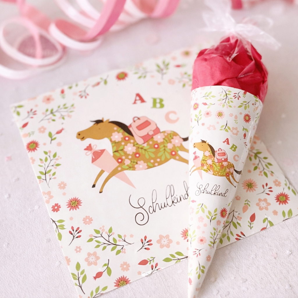 DIY Mini Schultüten Einschulung | Motiv Pferd | Deko & Gastgeschenk