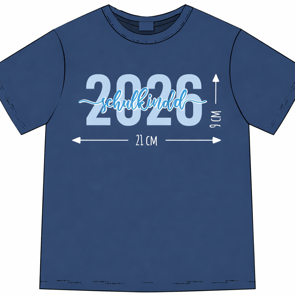 Schulkind Bügelbild T-Shirt zur Einschulung Blau Jahreszahl