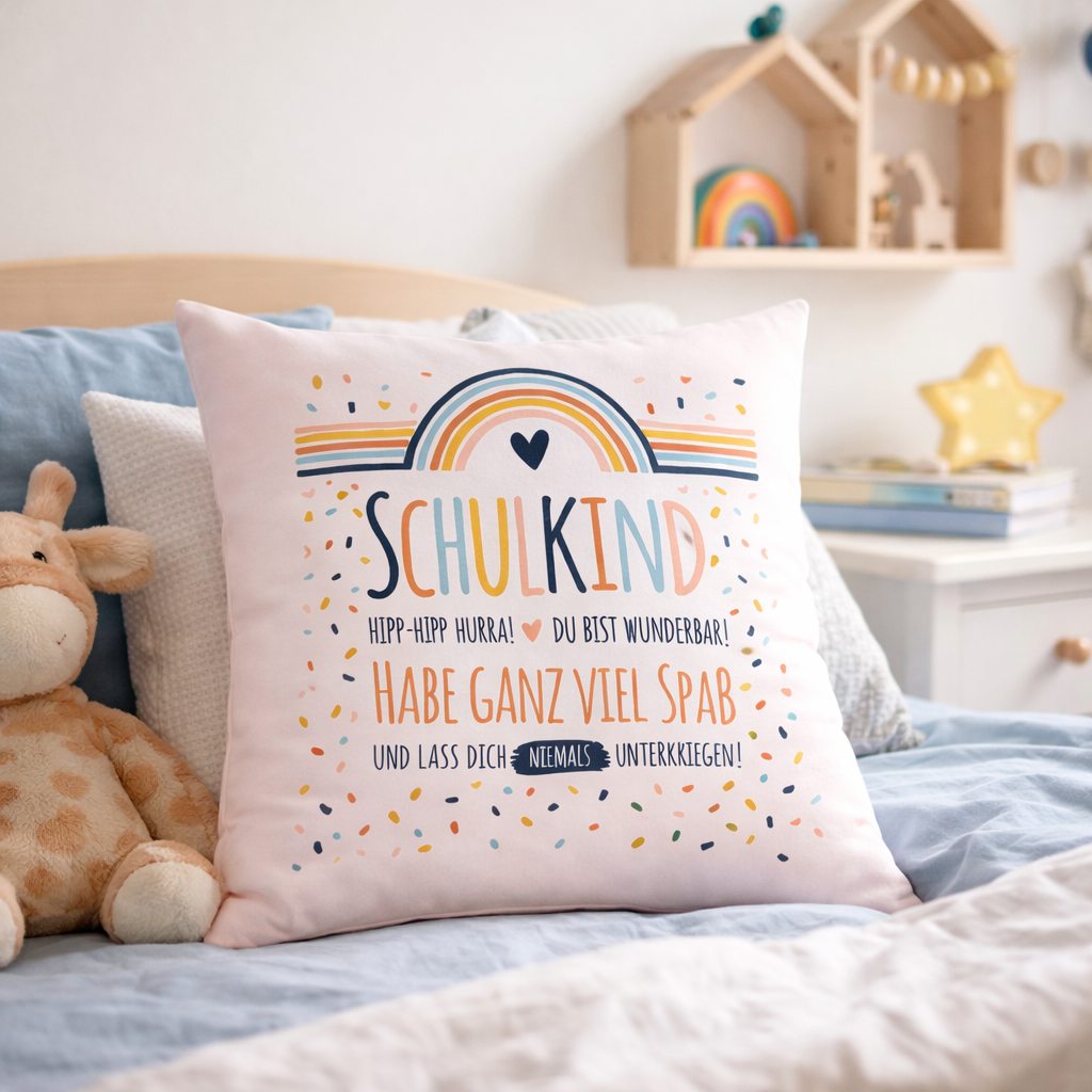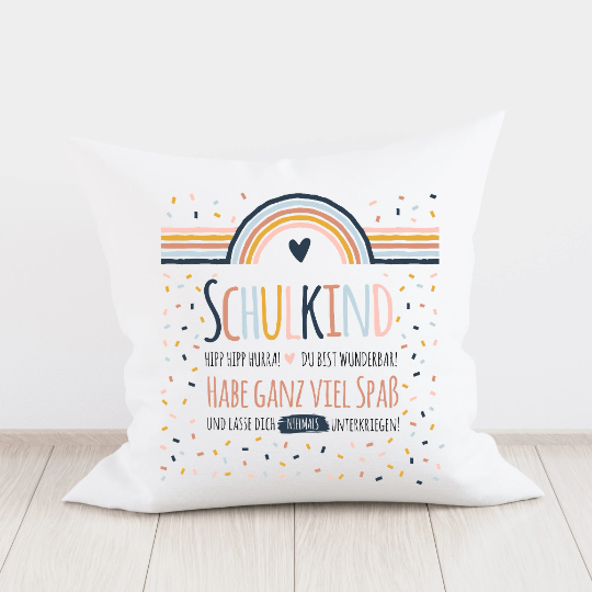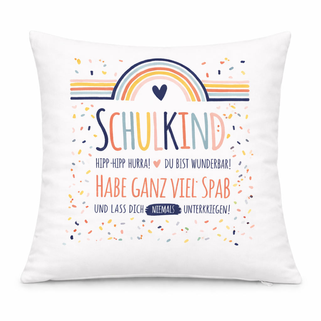Geschenk zum Schulanfang - KISSENBEZUG SCHULKIND - Regenbogen Konfetti