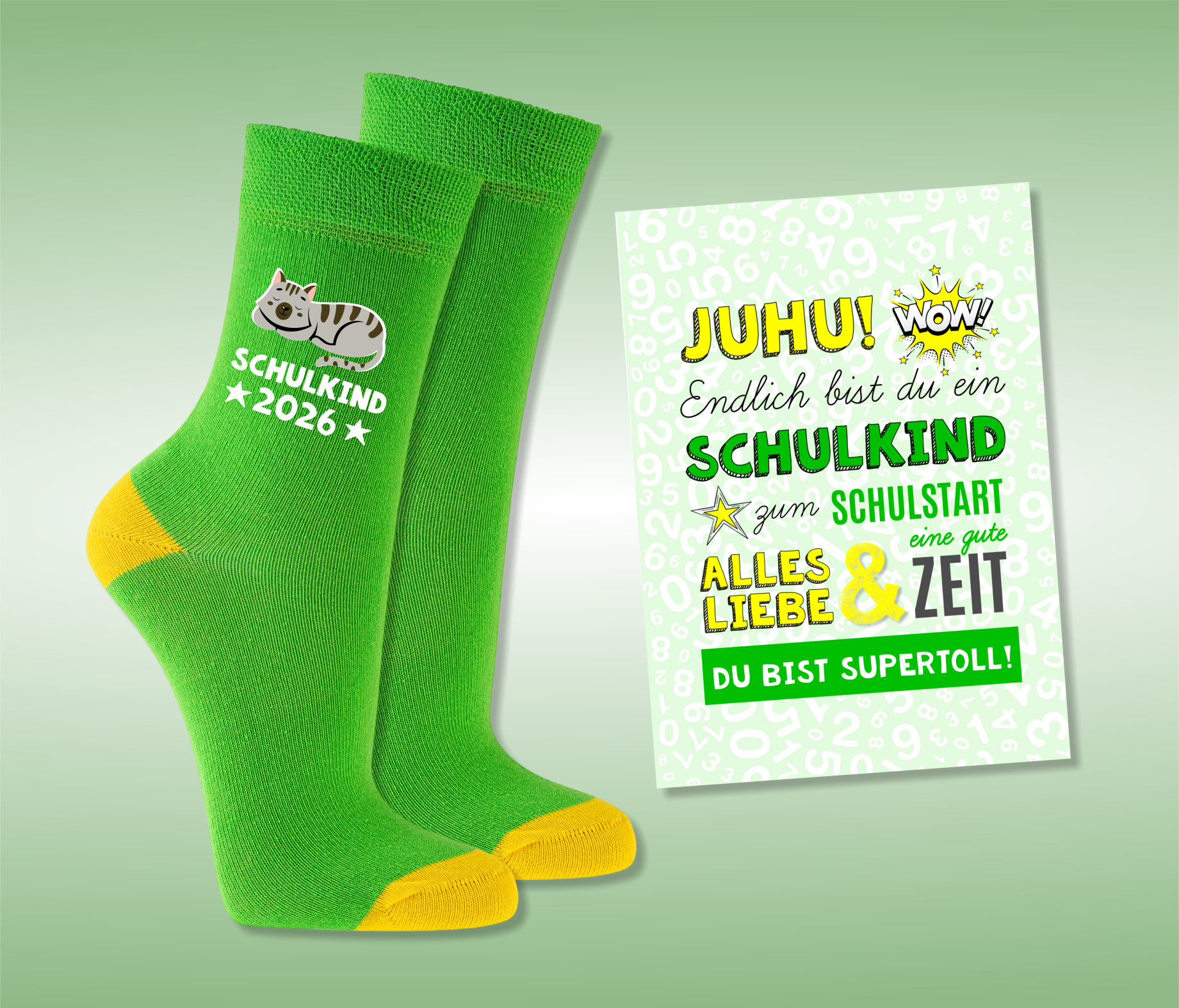 Einschulung Geschenk | Schulkind Socken grün - Motive zur Auswahl