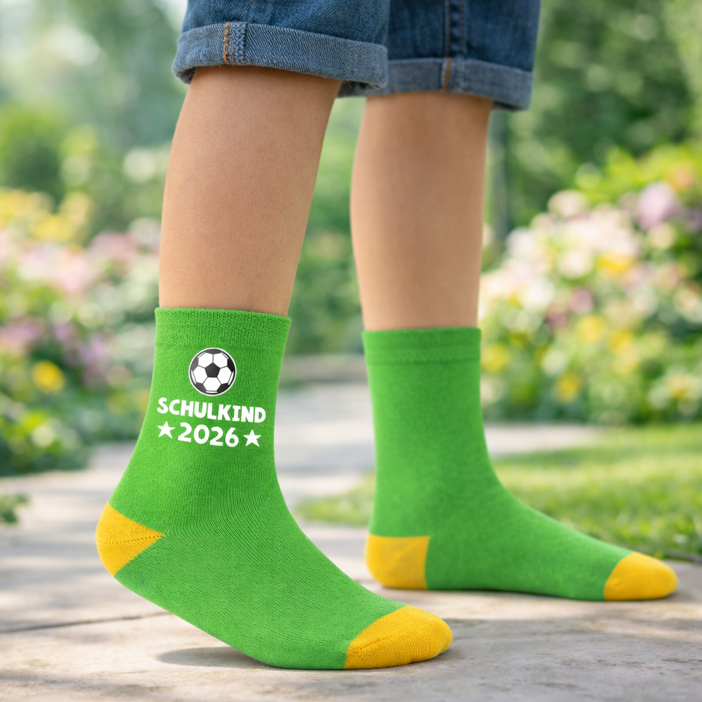 Hurra, die Schule geht los. Mit unseren super coolen Schulkind Socken macht der Schulstart gleich doppelt Spaß. Die grünen Socken sind ein frisches und modernes Accessoire für das Einschulungsoutfit kleiner Erstklässler.