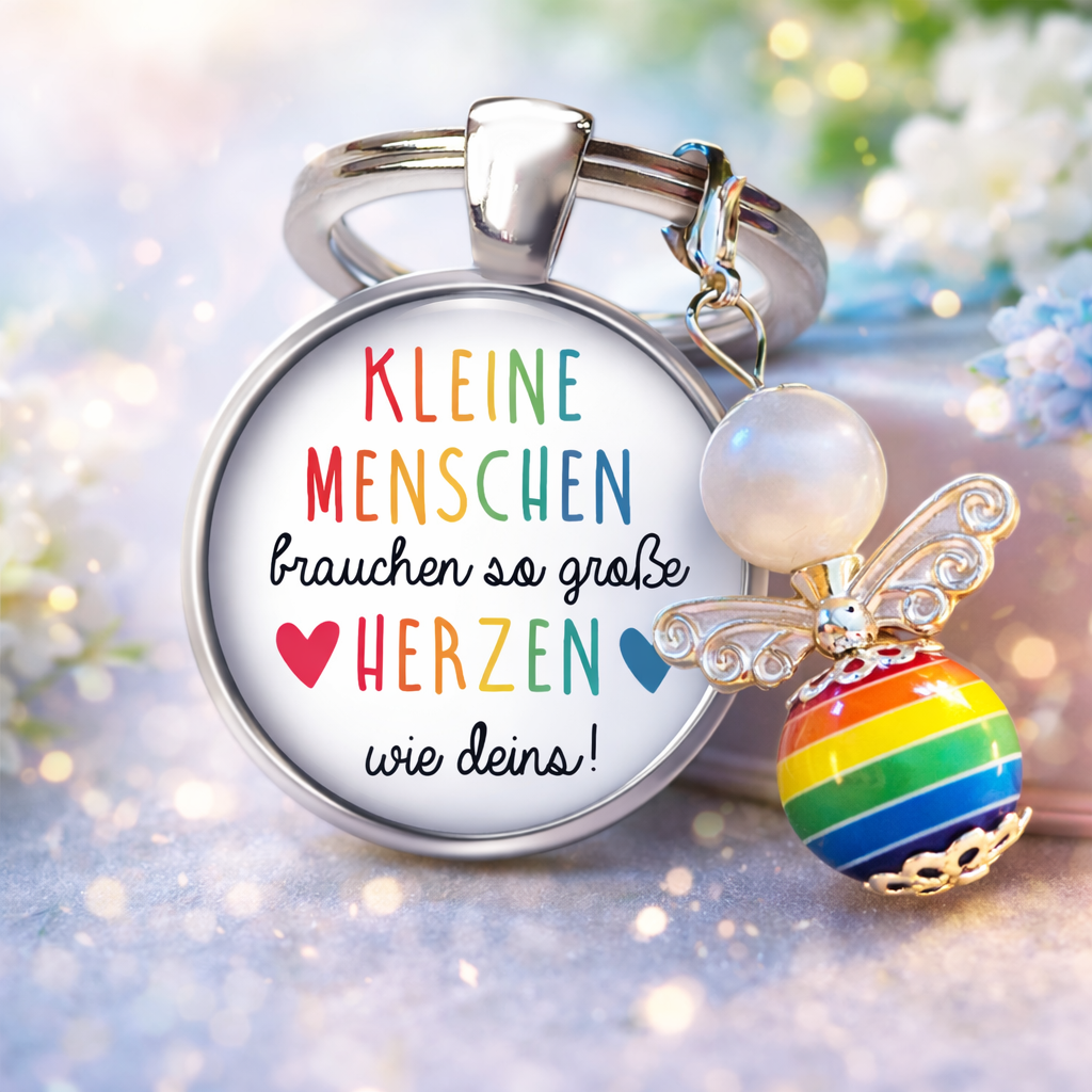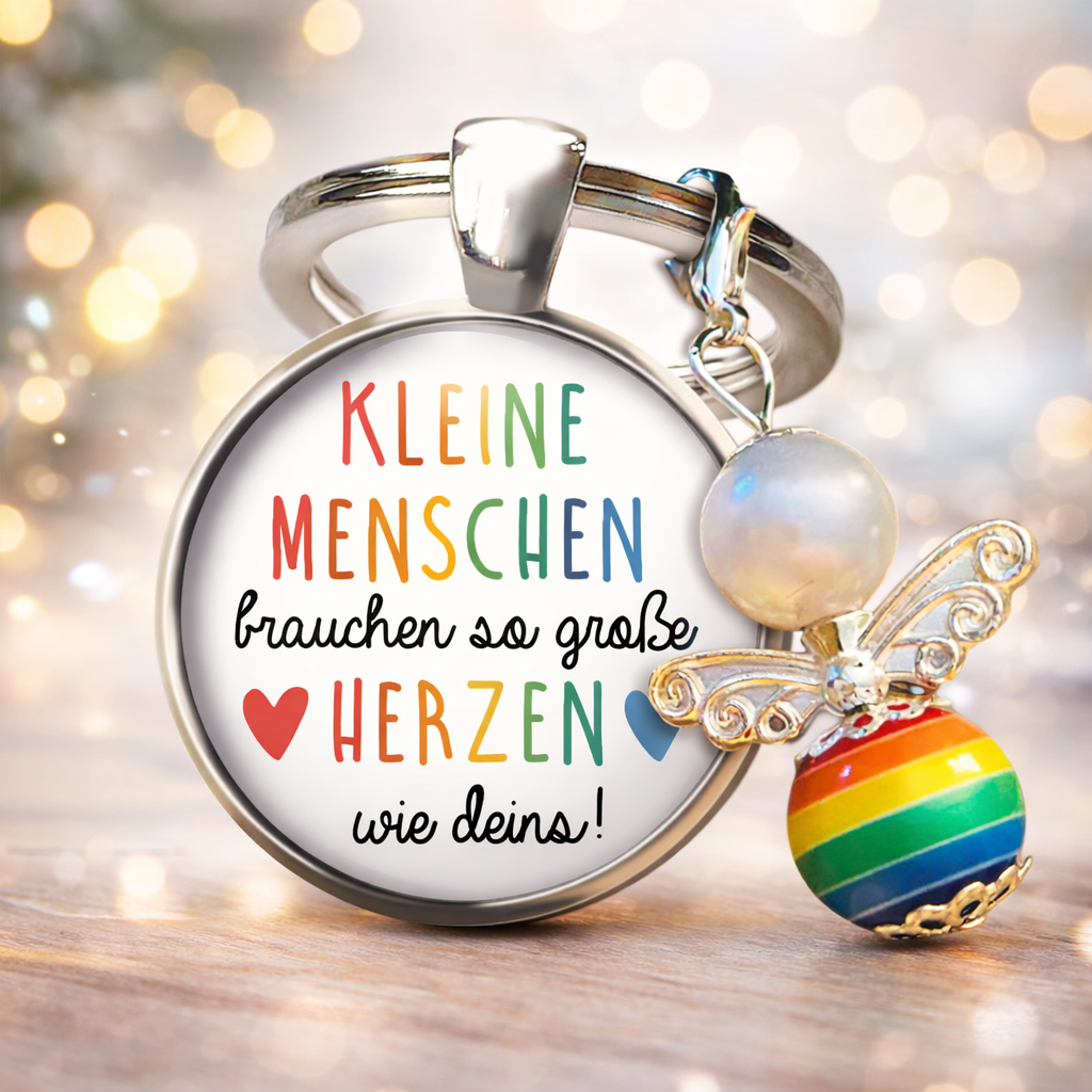 Kleine Menschen brauchen so große Herzen wie deins. Dieser liebevoll gestaltete Schlüsselanhänger sagt auf besondere Weise Danke für Geduld, Fürsorge und all die kleinen Dinge, die den Alltag unserer Kinder so wertvoll machen.