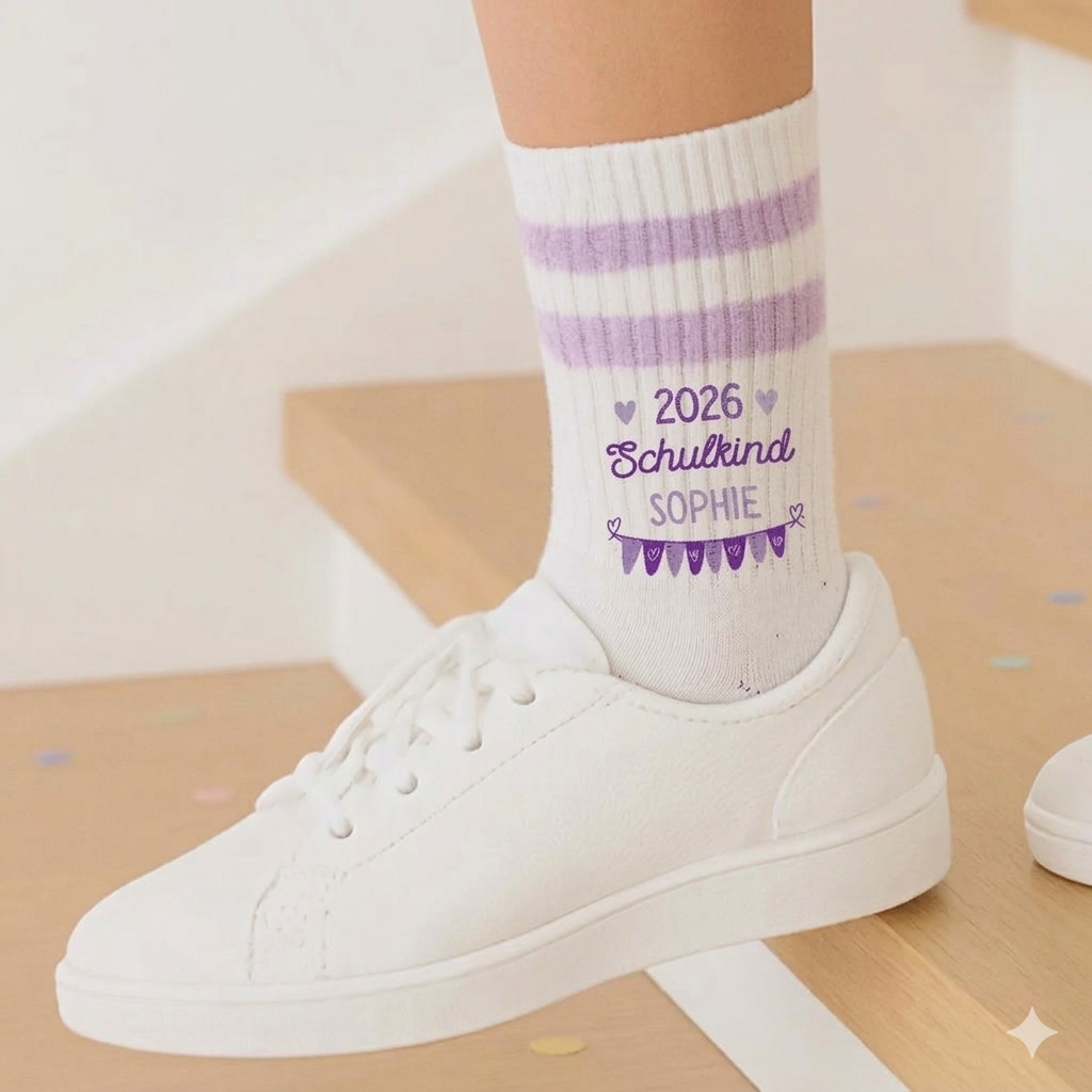 Einschulung Socken mit Name – Schulkind Socken Lila – Geschenk Schultüte