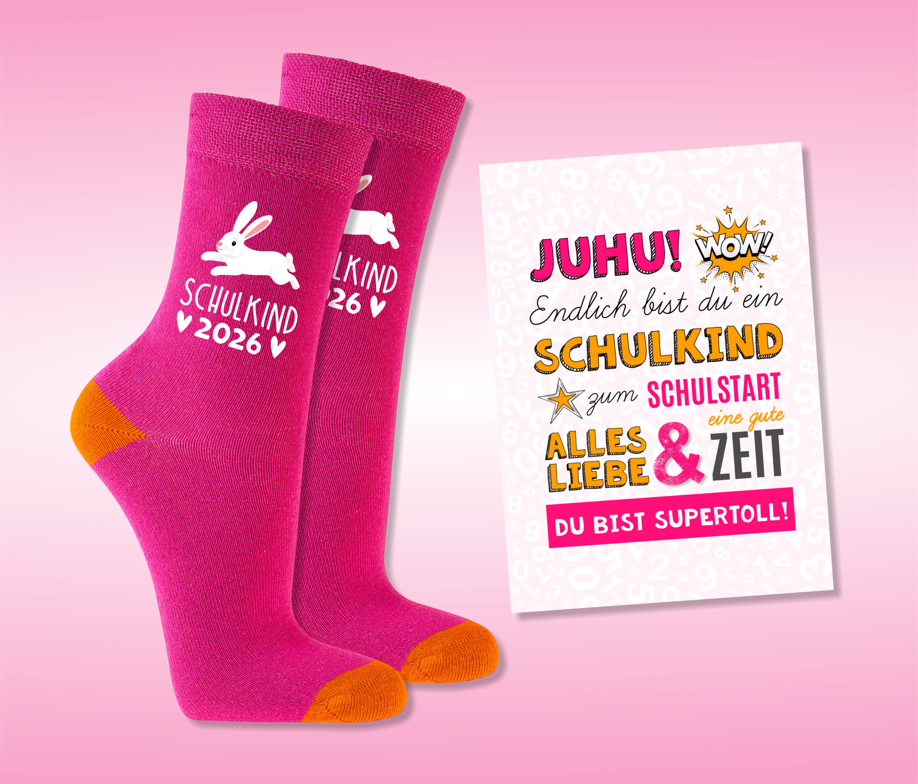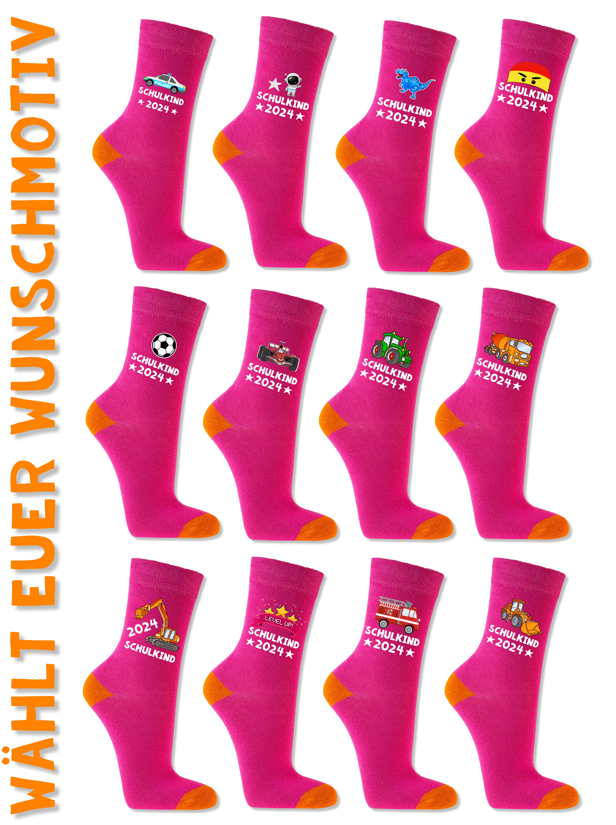 Einschulung Geschenk | Schulkind Socken pink - verschiedene Motive