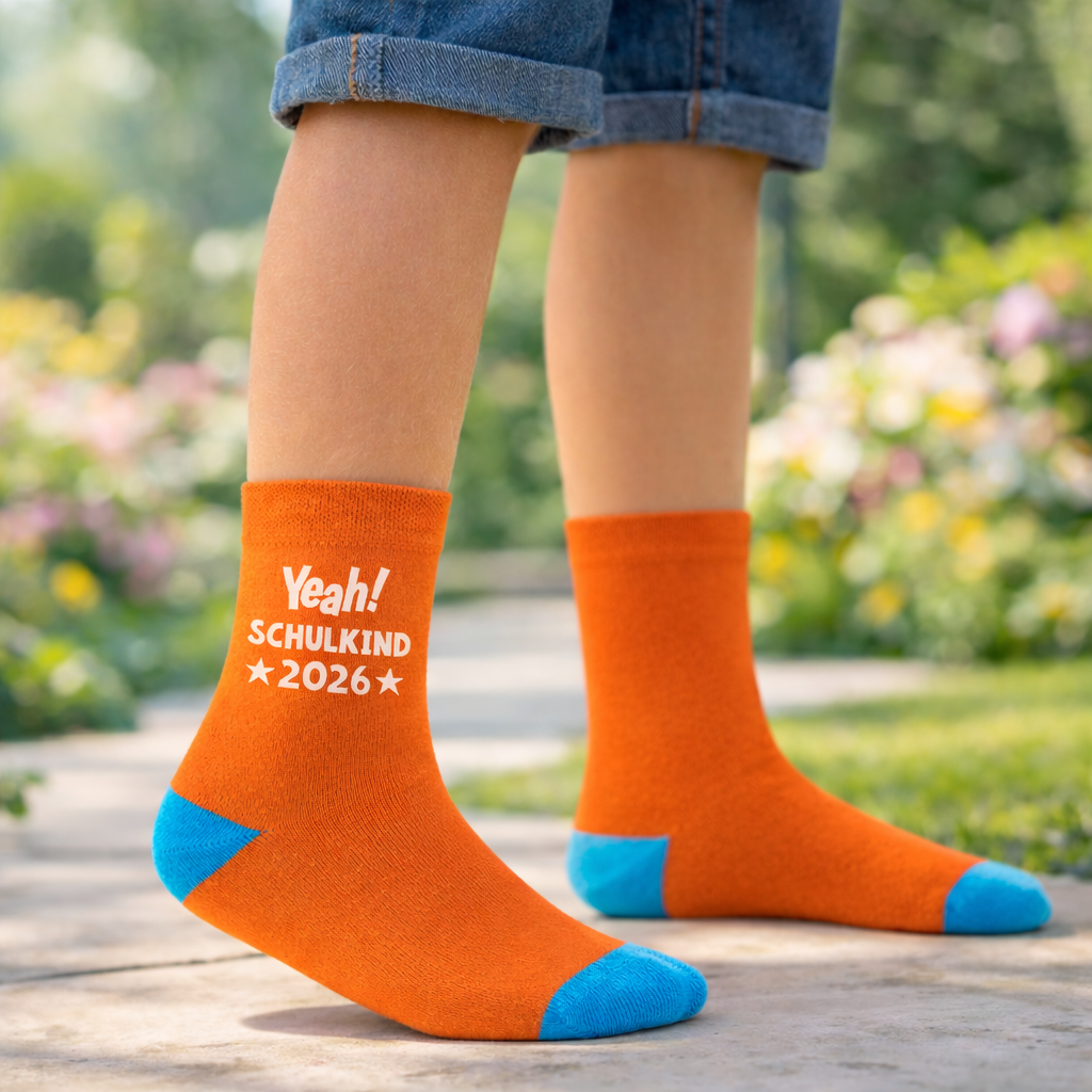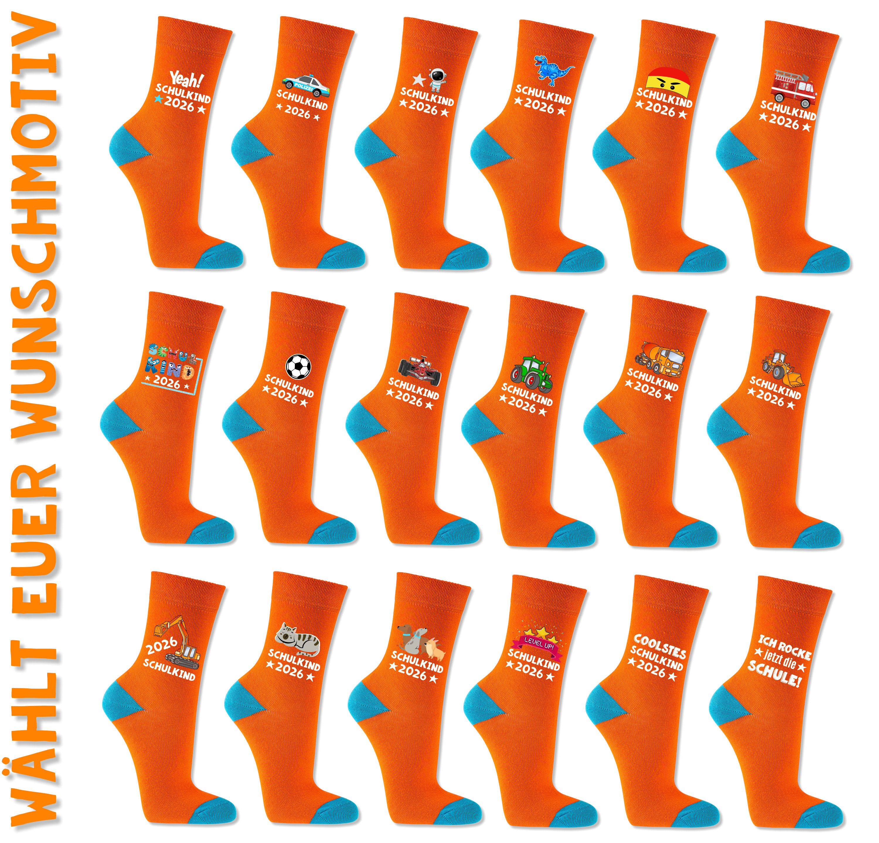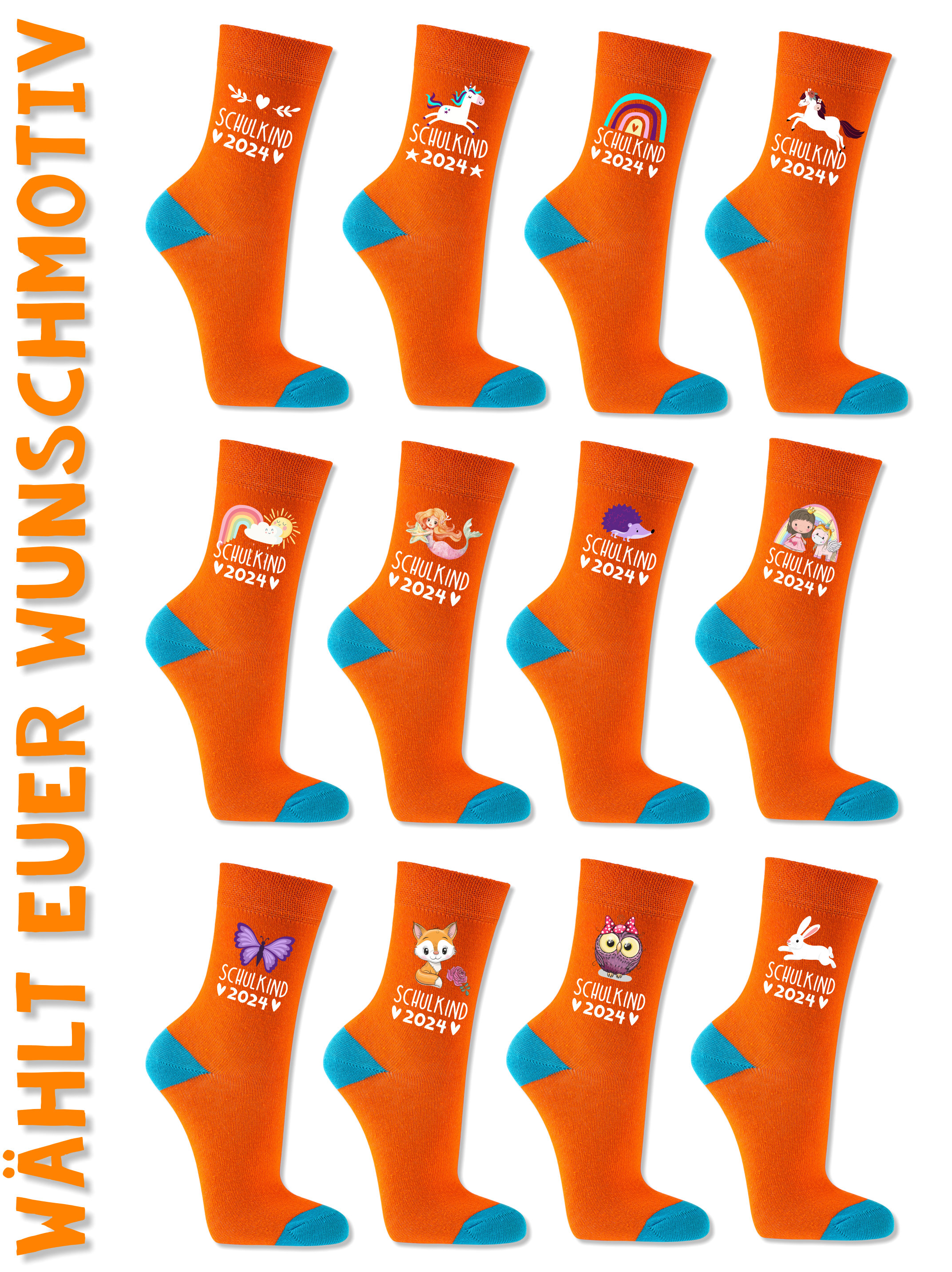 Einschulung Geschenk | Schulkind Socken orange - Motive zur Auswahl
