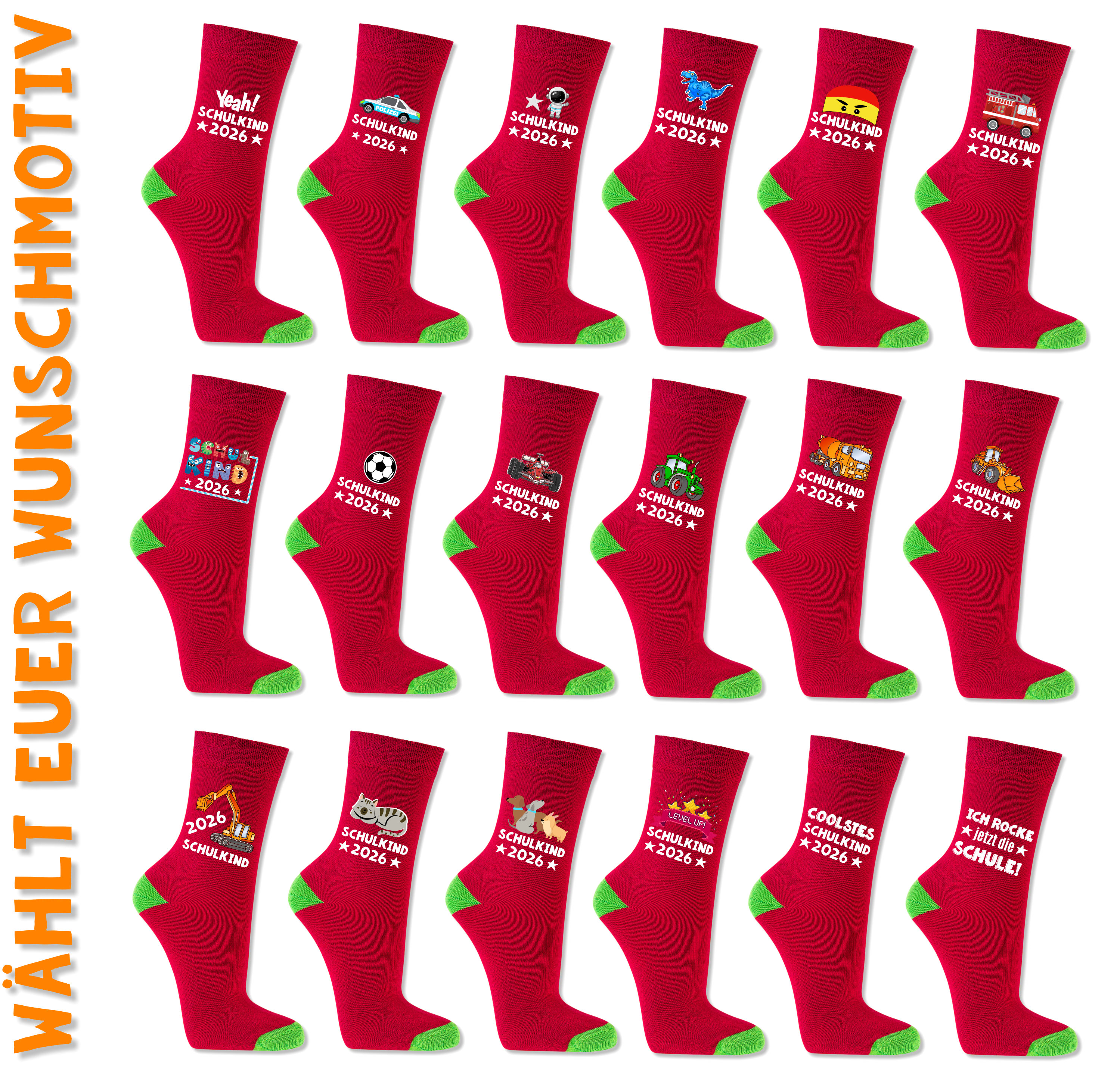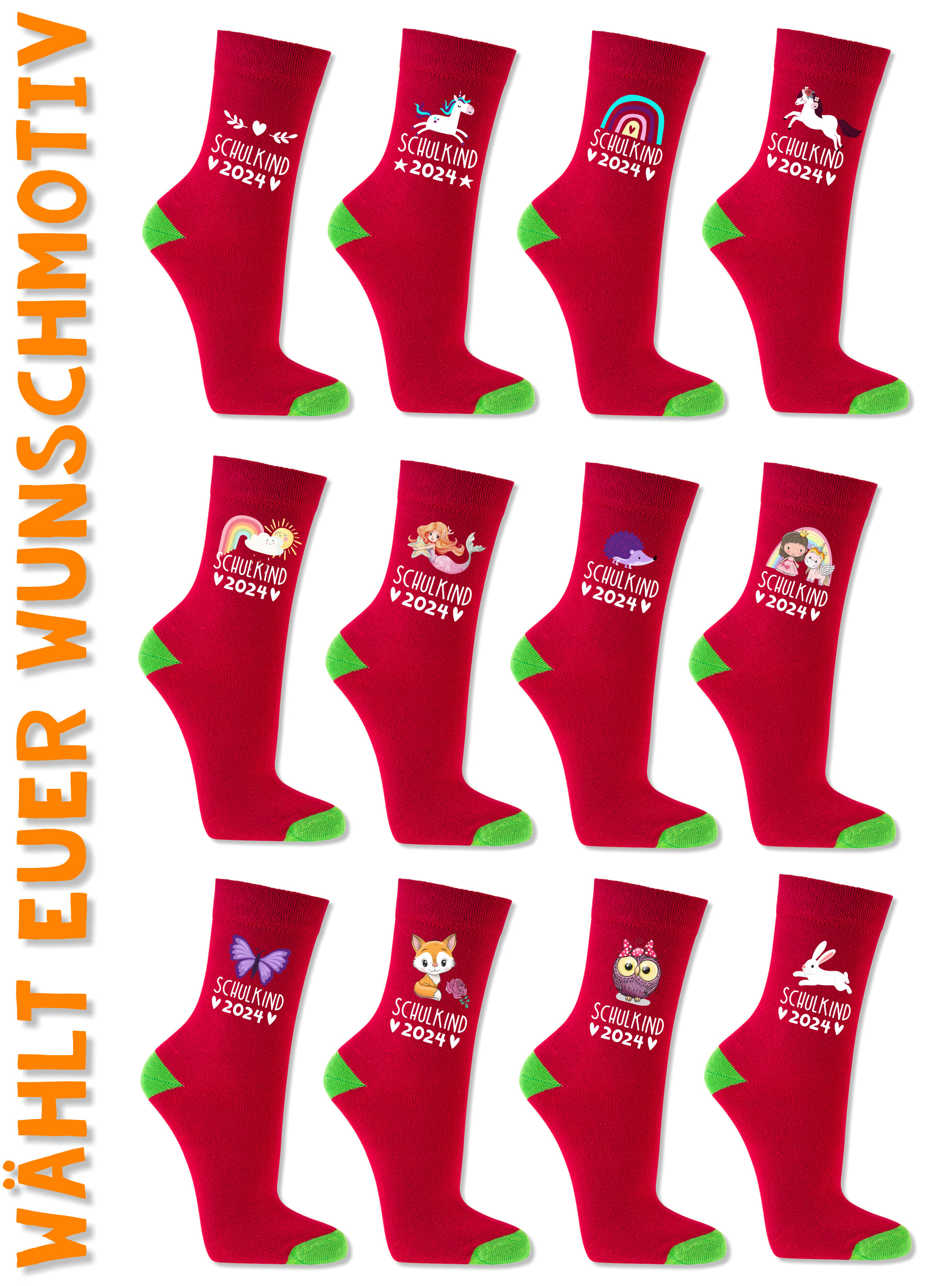 Einschulung Geschenk | Schulkind Socken rot - Motive zur Auswahl