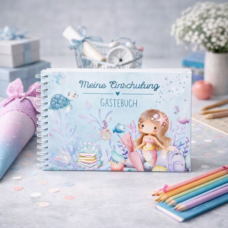 Gästebuch zur Einschulung im Meerjungfrau Design