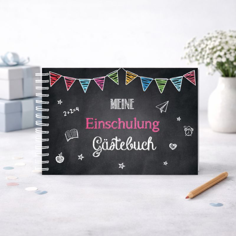 Der Start ins Schulleben ist für Kinder ein ganz besonderer Moment und ein wundervoller Anlass, diesen Tag gemeinsam zu feiern. Mit diesem liebevoll gestalteten Gästebuch zur Einschulung im Tafeldesign bleiben die Erinnerungen an diesen Meilenstein für viele Jahre erhalten.