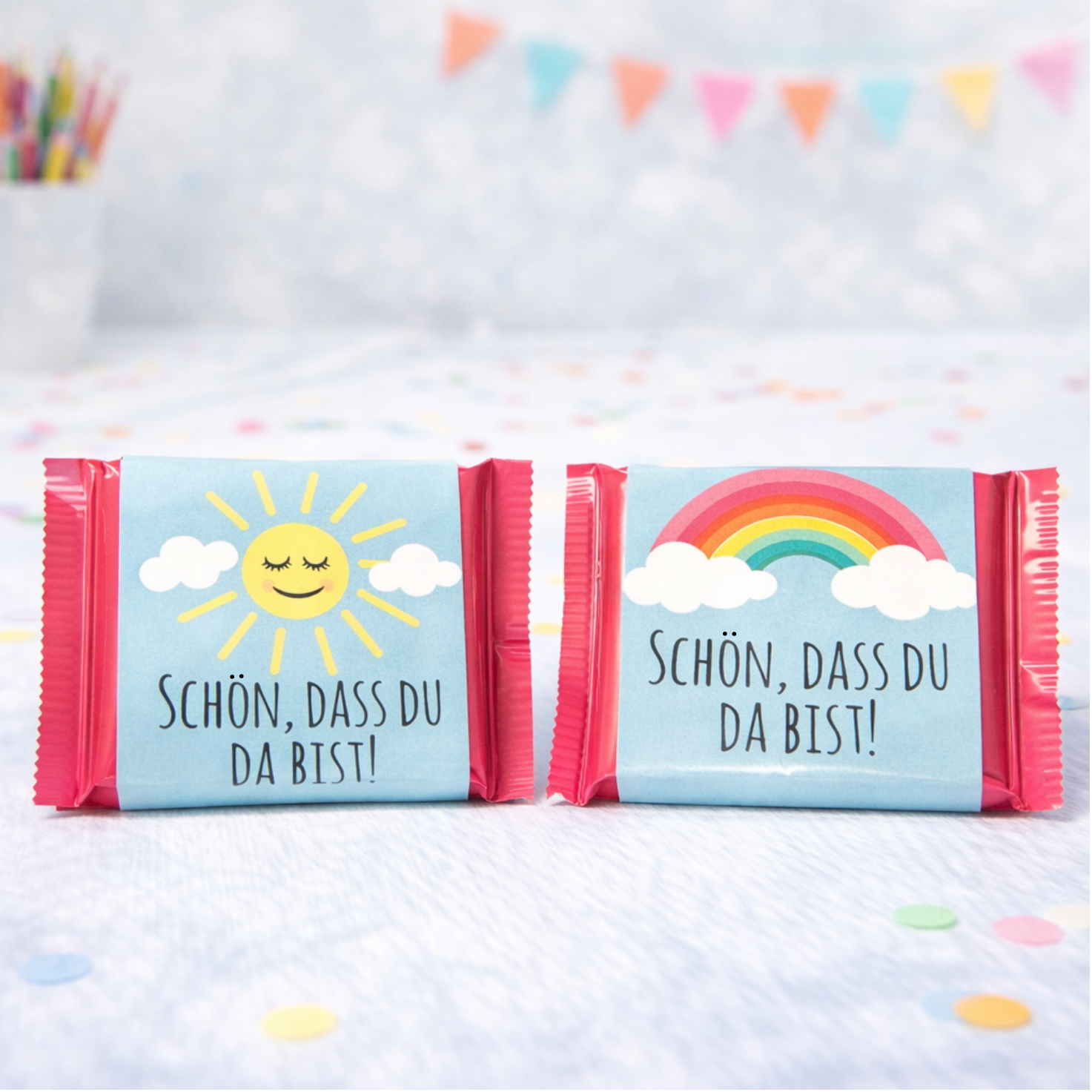 Liebe ist süß – schön, dass du da bist Mit diesen liebevoll gestalteten Schokoladenbanderolen... mehr