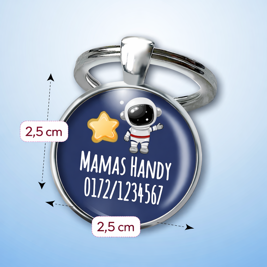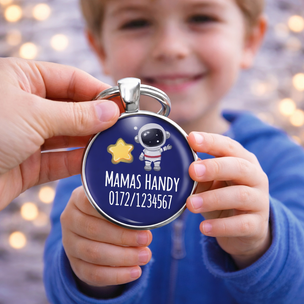 Einschulung Geschenk | Notfallnummer Anhänger – Motiv Astronaut