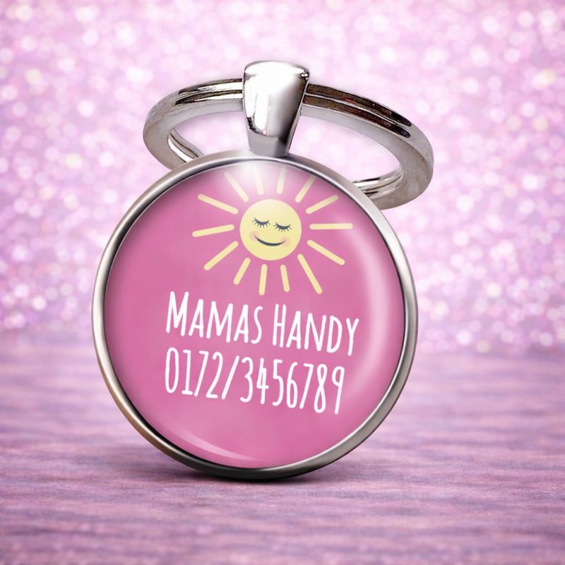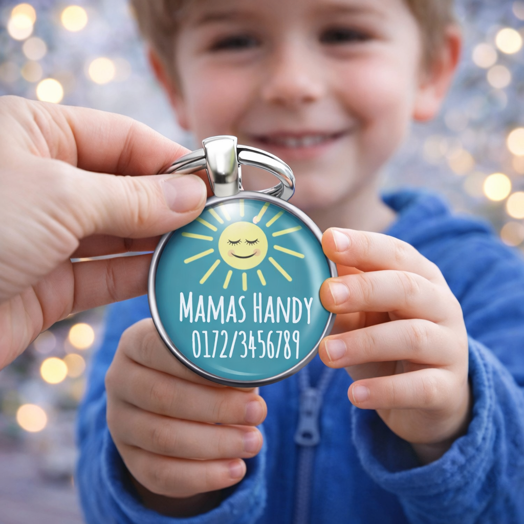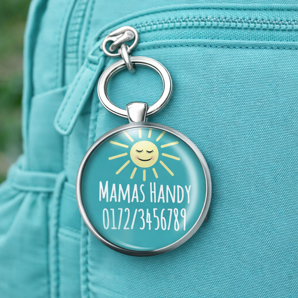 Einschulung Geschenk | Notfallnummer Anhänger – Motiv Sonne
