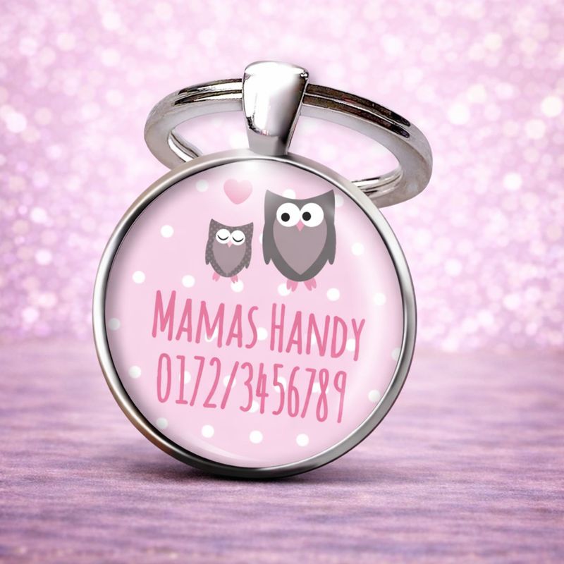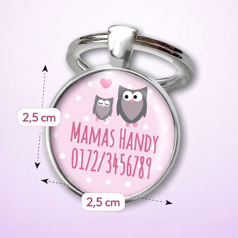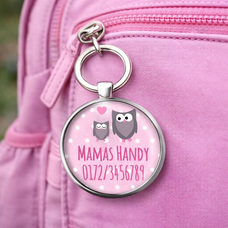 Einschulung Geschenk | Notfallnummer Anhänger – Motiv Eulen