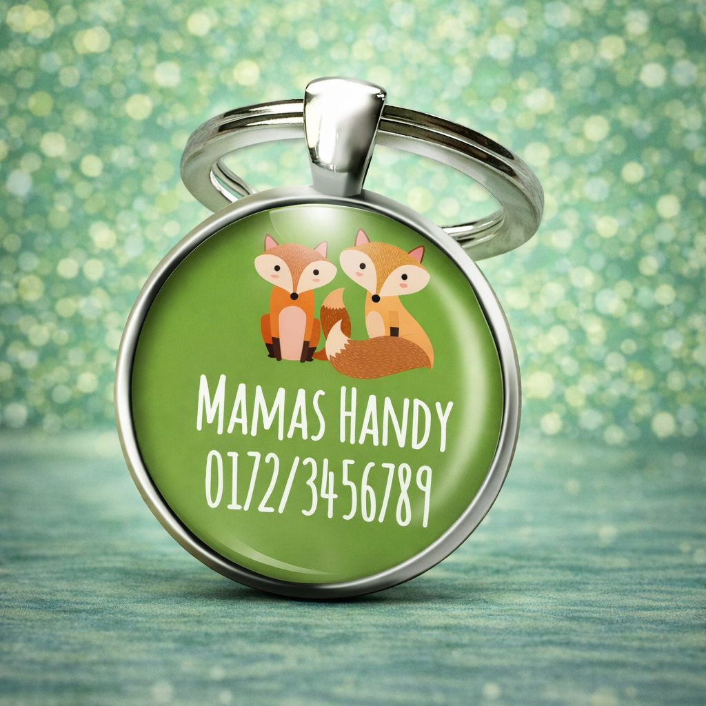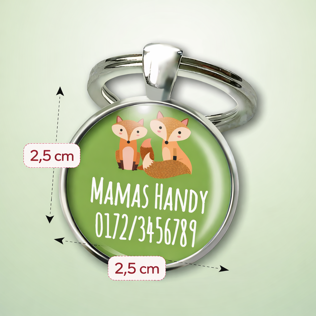 Einschulung Geschenk | Notfallnummer Anhänger – Motiv Füchse