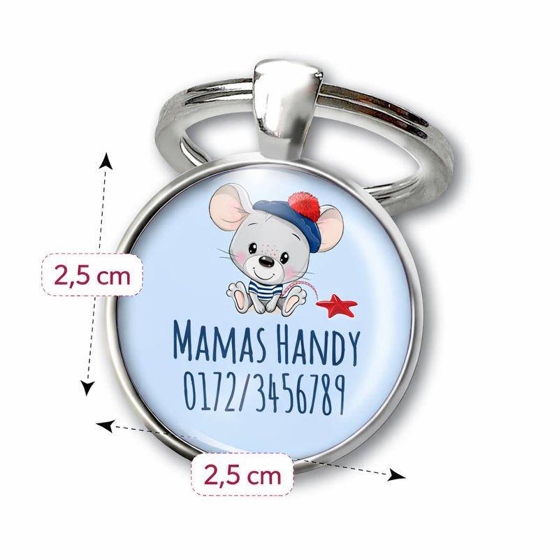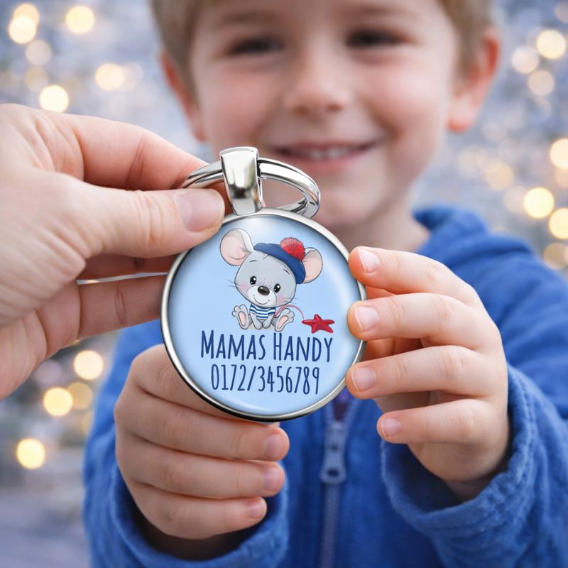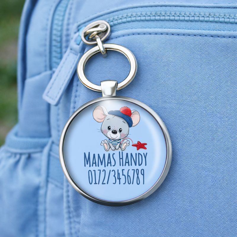 Einschulung Geschenk | Notfallnummer Anhänger – Motiv Maus
