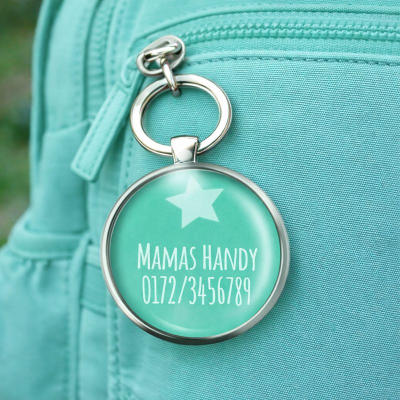 Der Start in einen neuen Lebensabschnitt ist für Kinder aufregend und für Eltern oft mit gemischten Gefühlen verbunden. Dieser Notfallnummer Anhänger schenkt ein gutes Gefühl und sorgt dafür, dass Mama oder Papa im Fall der Fälle schnell erreichbar sind.