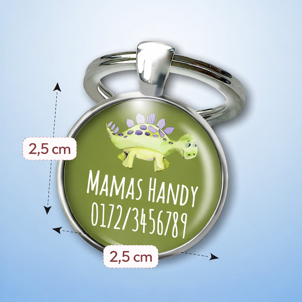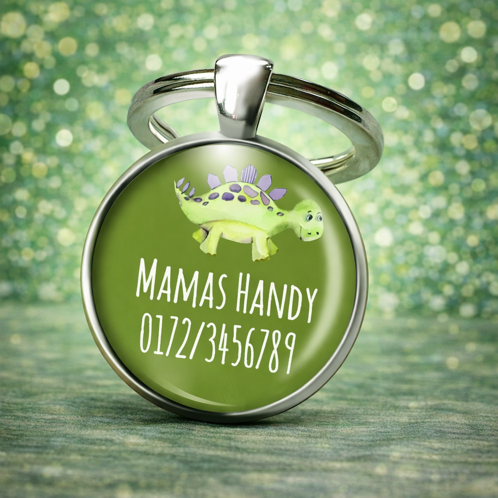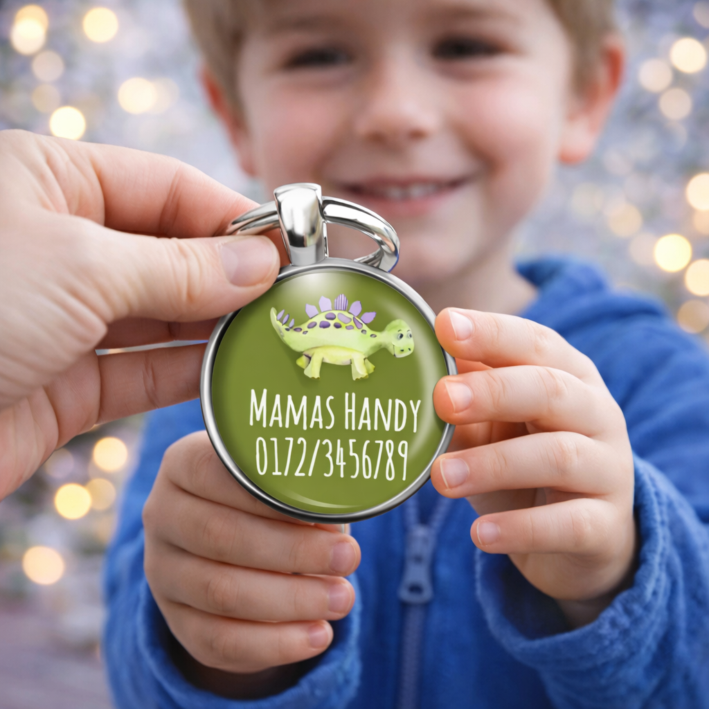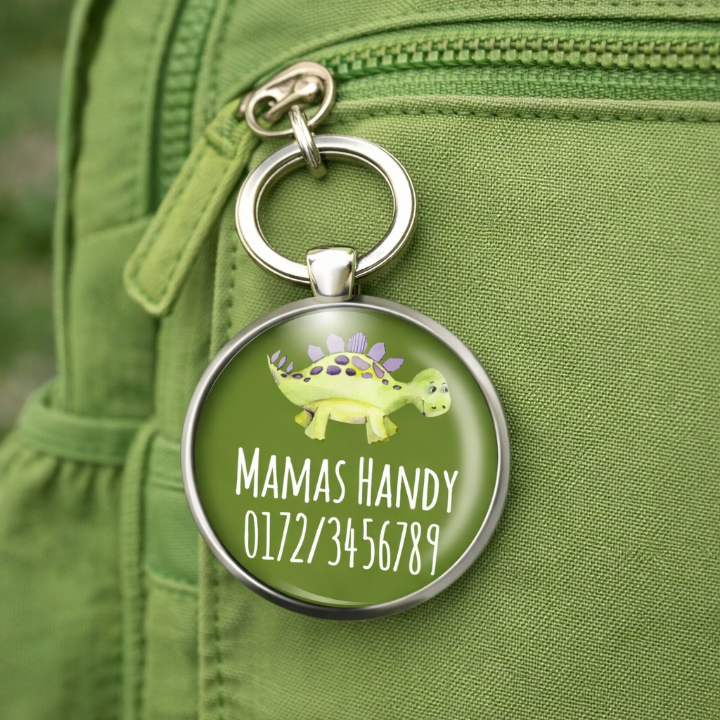 Einschulung Geschenk | Notfallnummer Anhänger – Motiv Dino