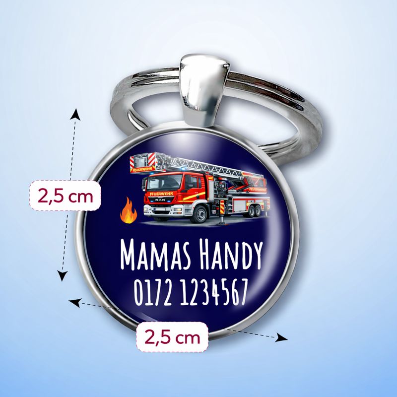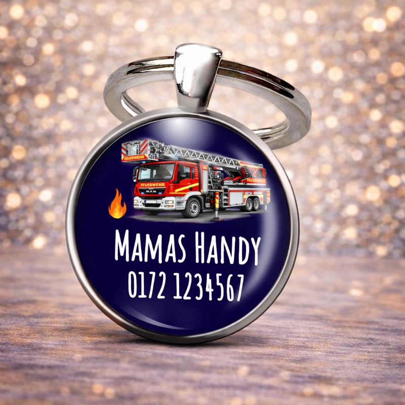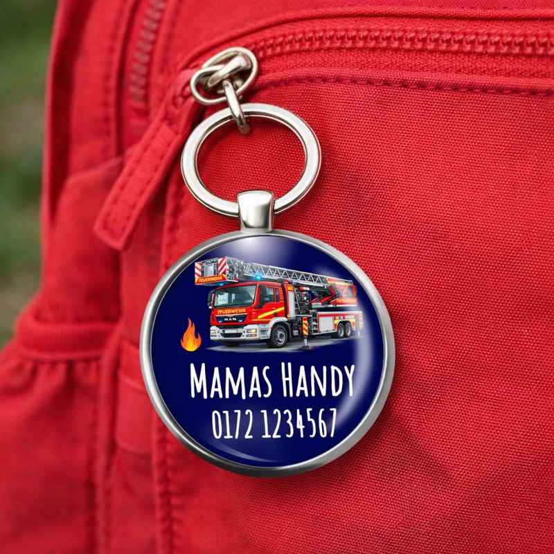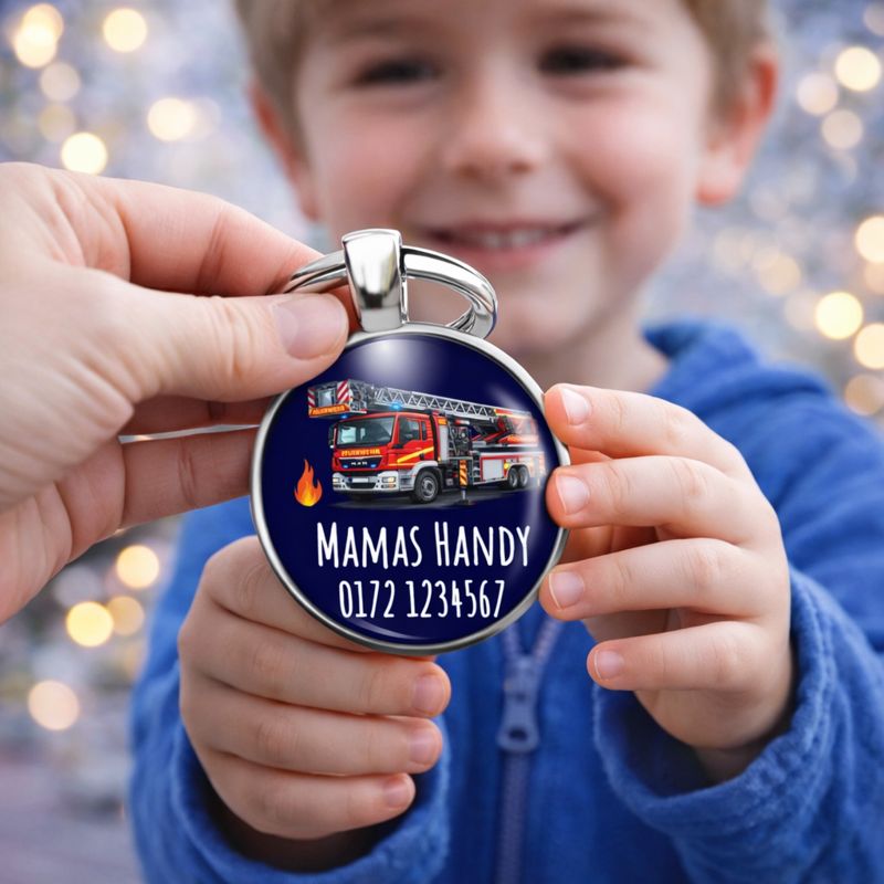 Einschulung Geschenk | Notfallnummer Anhänger – Motiv Feuerwehrauto