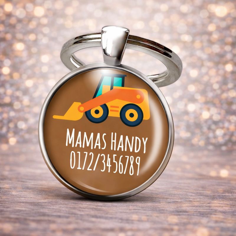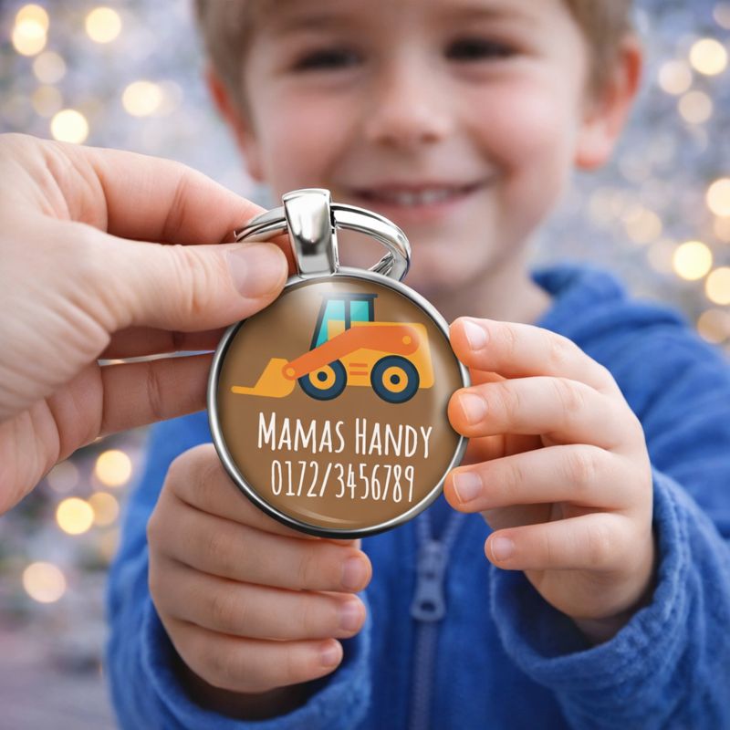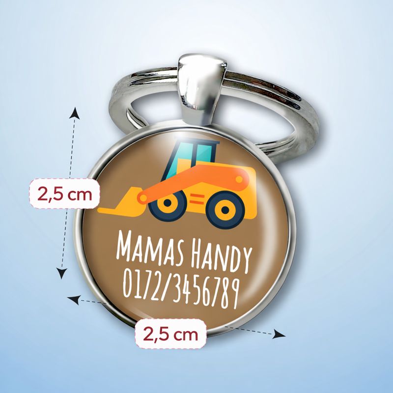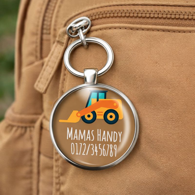 Einschulung Geschenk | Notfallnummer Anhänger – Motiv Bagger