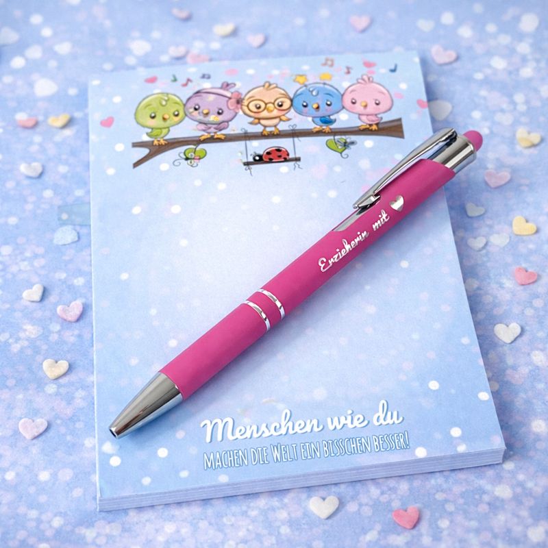 Geschenkset „Erzieherin mit Herz“ – Kugelschreiber & Notizblock