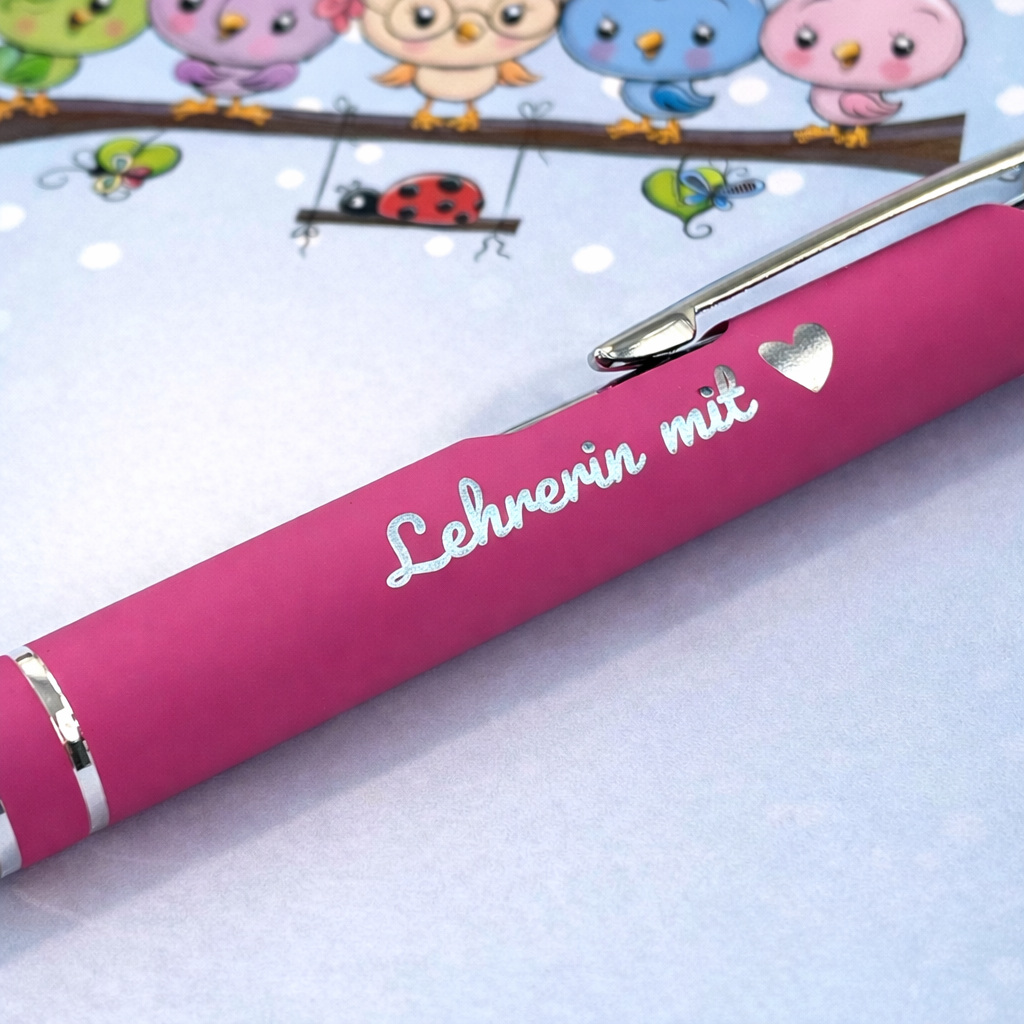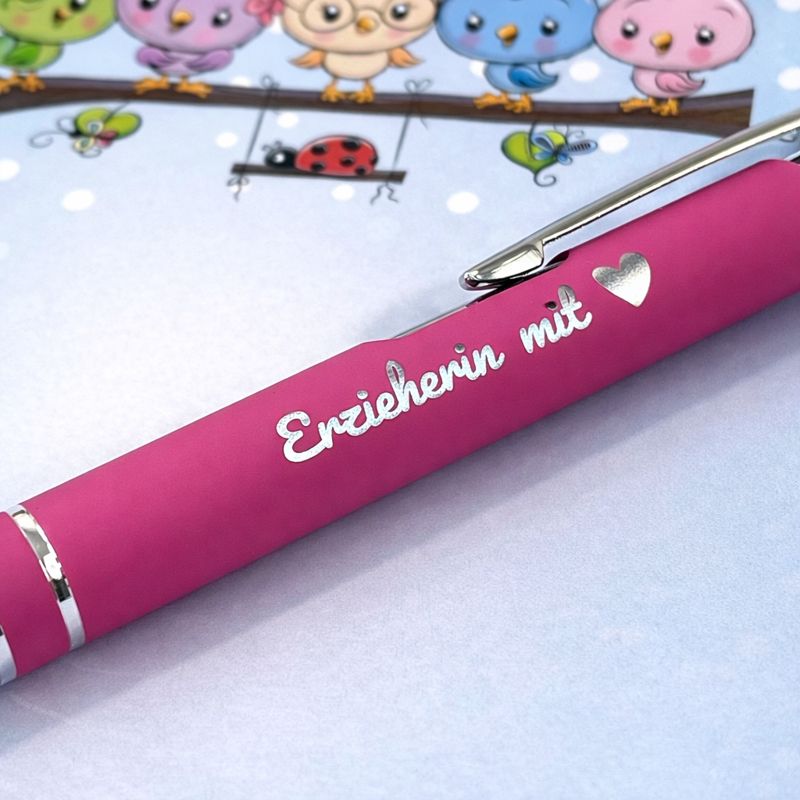 - ✔ Kugelschreiber mit der Gravur „Erzieherin mit Herz“ (Herzsymbol)