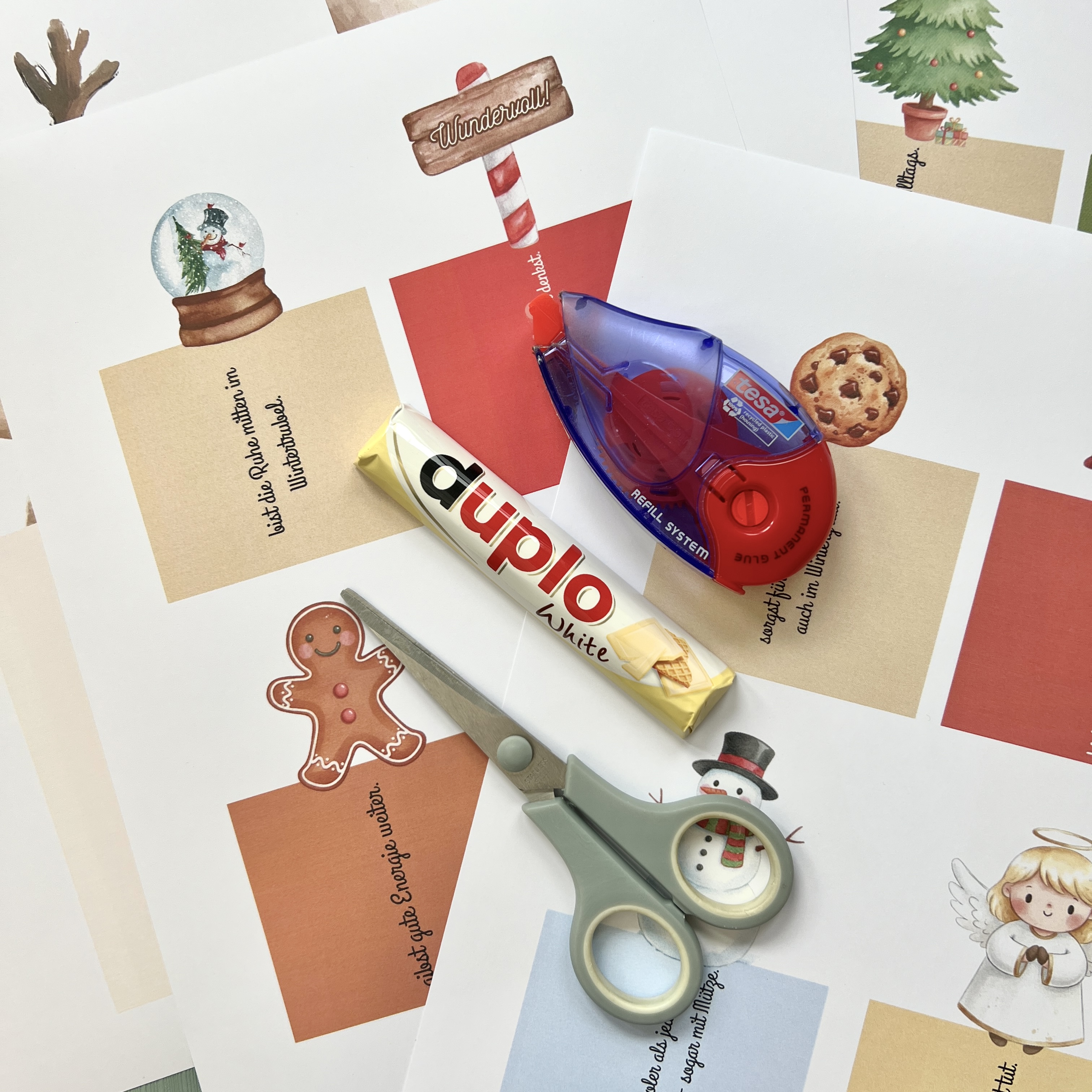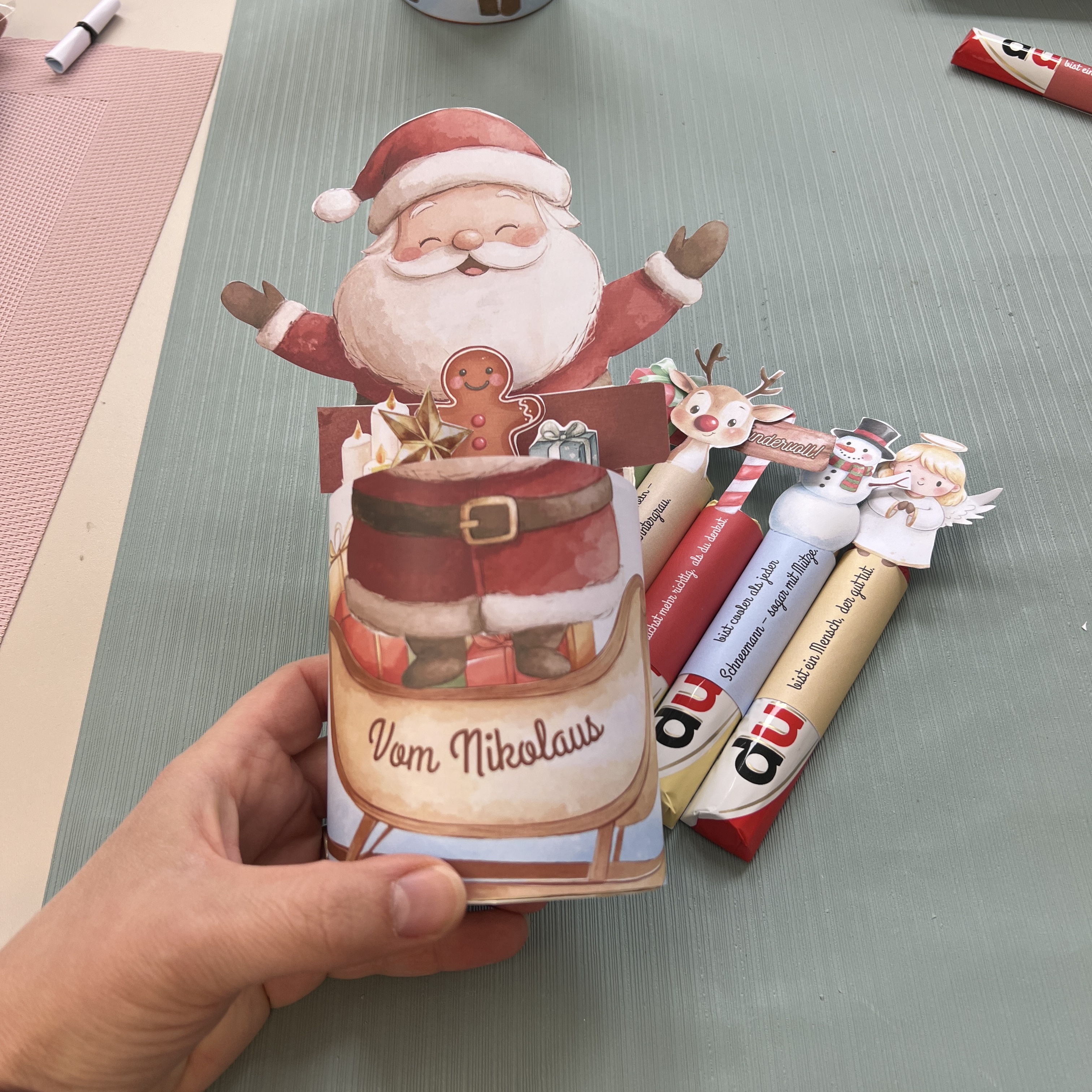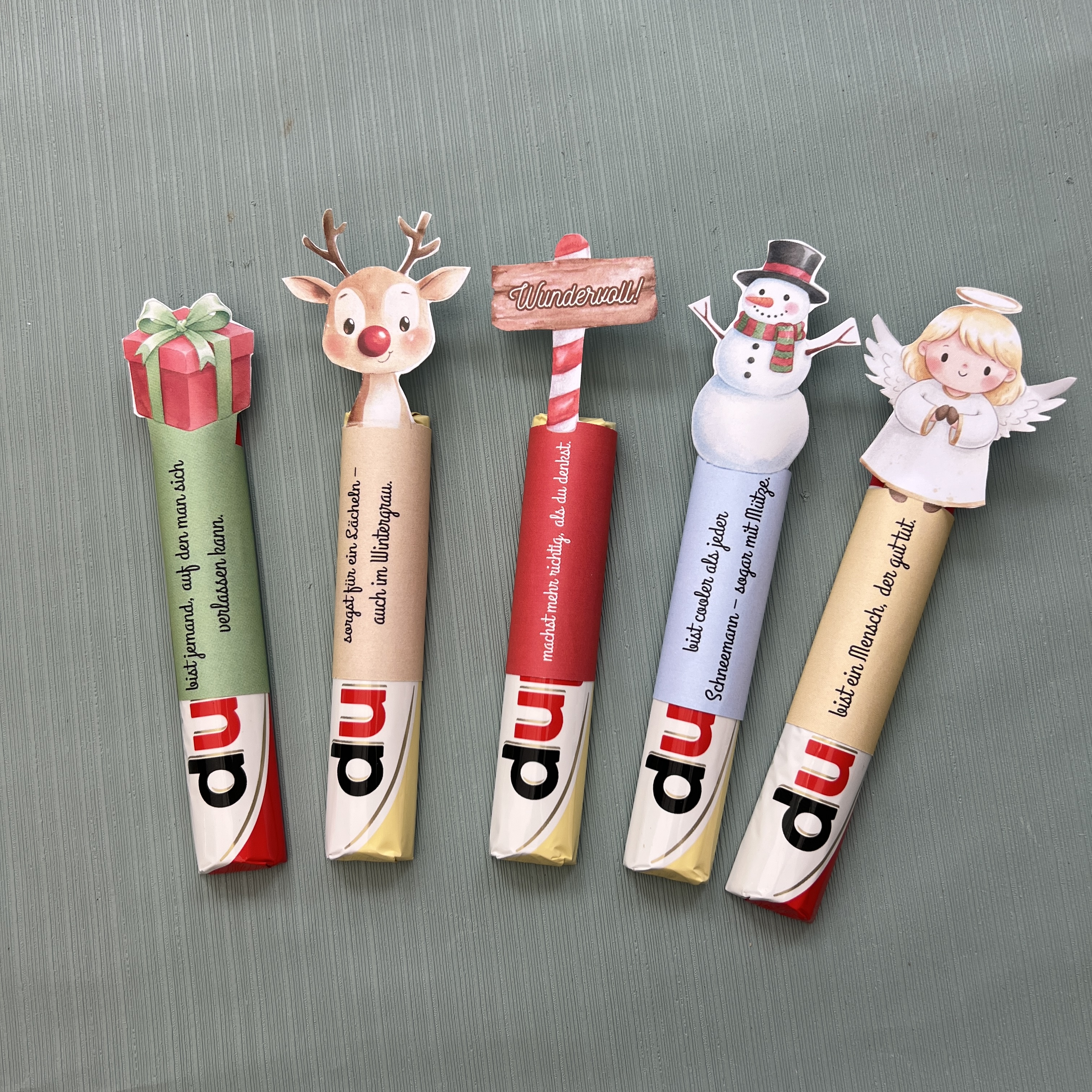 Mit diesen süßen gestalteten Banderolen machst du im Handumdrehen aus einem kleinen Schokoriegel ein originelles, persönliches Geschenk – perfekt für die Adventszeit, Nikolaus oder Weihnachten. Ob für Familie, Freunde, Kollegen, die Schulklasse oder als schnelle Wichtelüberraschung: Diese Banderolen bringen sofort Weihnachtsstimmung!